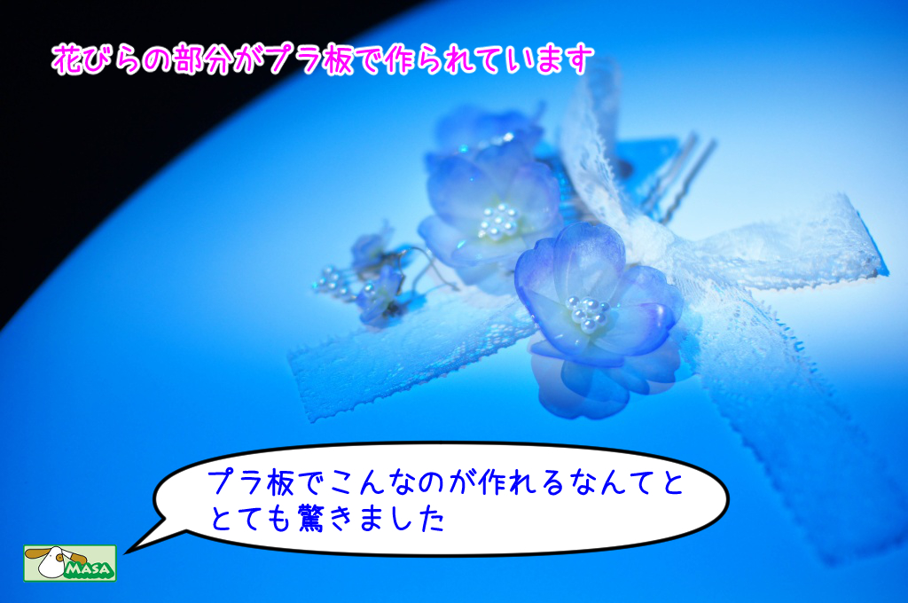 プラ板のアクセサリーは着物の色ととても良く合っていて、綺麗でしたね。