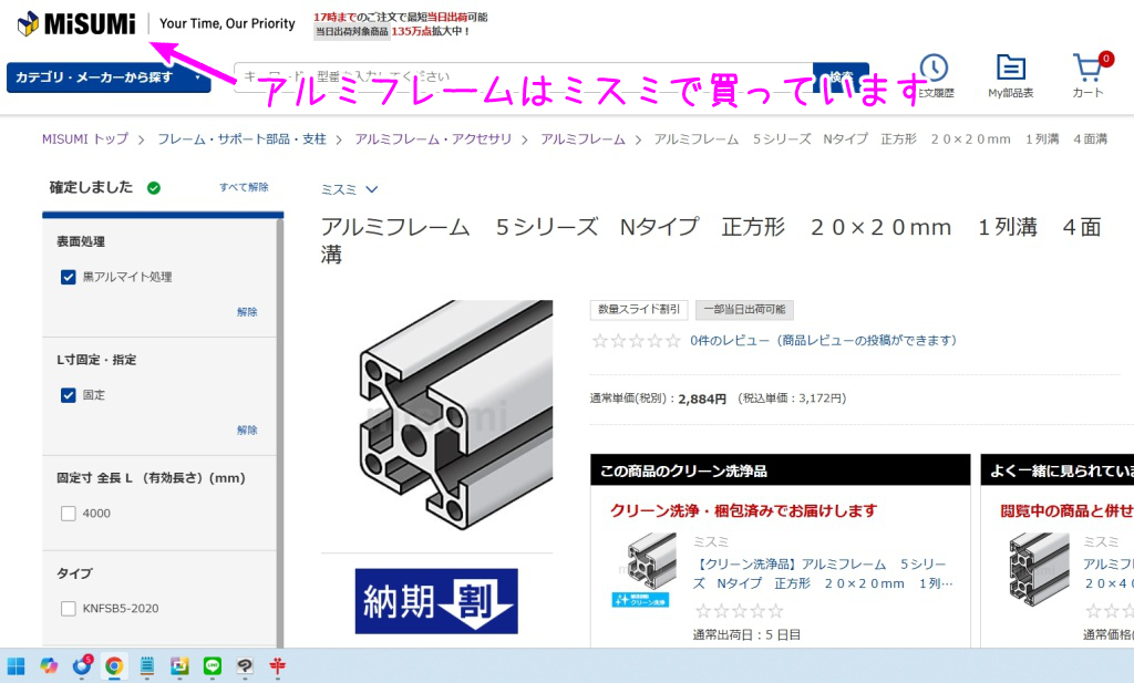 さて、それではいつも買うミスミさんに注文です。