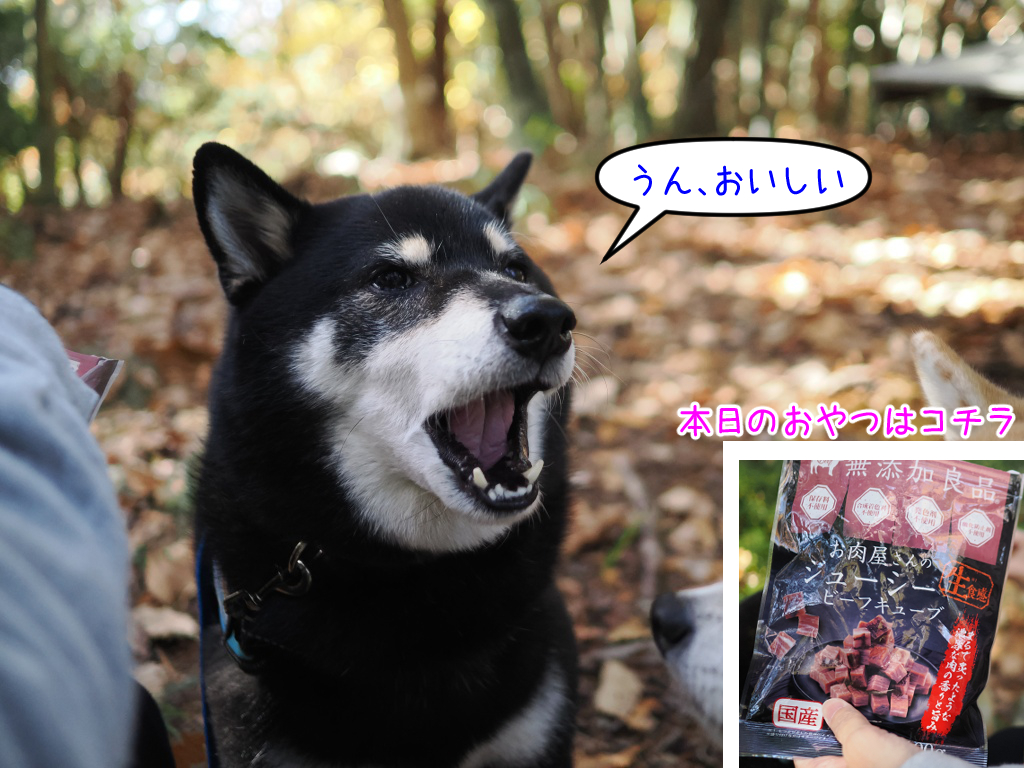 ベンチなどの休憩できるところも無いので、ワンコ達だけおやつにしましょう。
