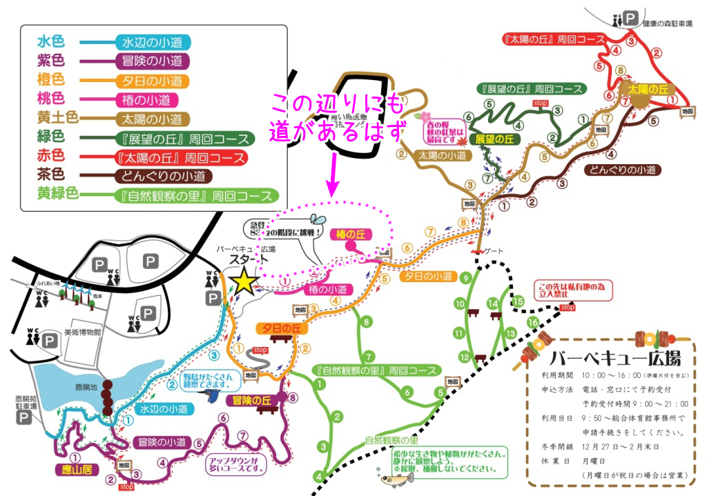 どんぐりの小道を経由して、バーベキュー広場まで戻って来ました。