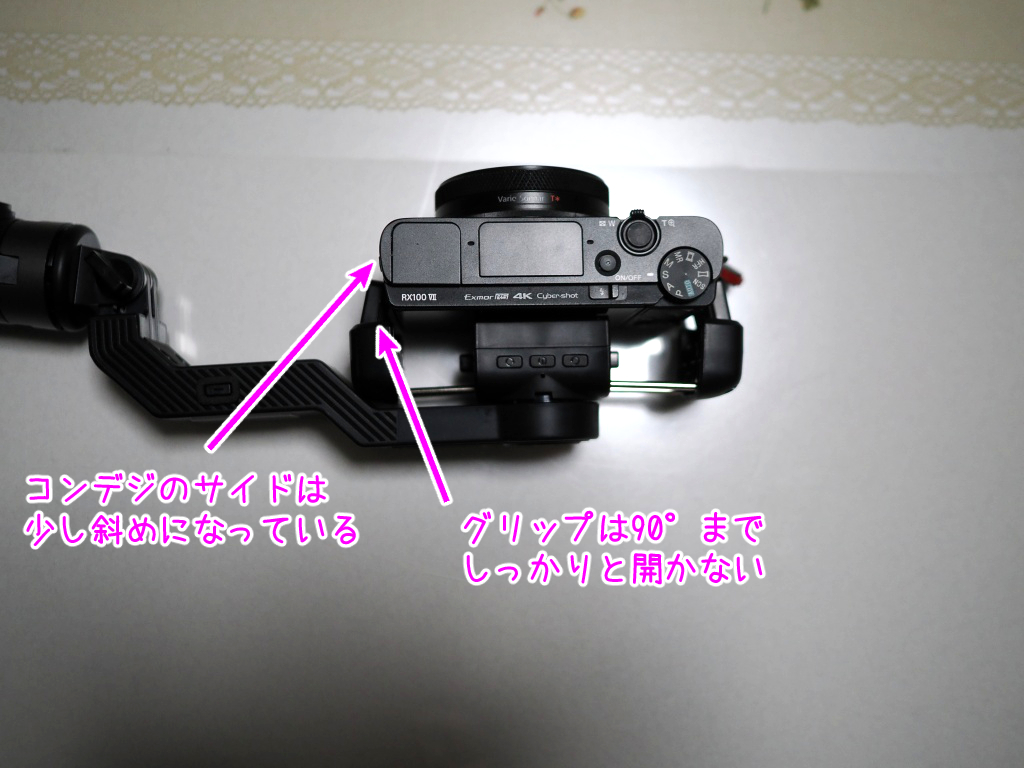 グリップがあまり開かないので、コンデジをしっかりと掴んでくれません。