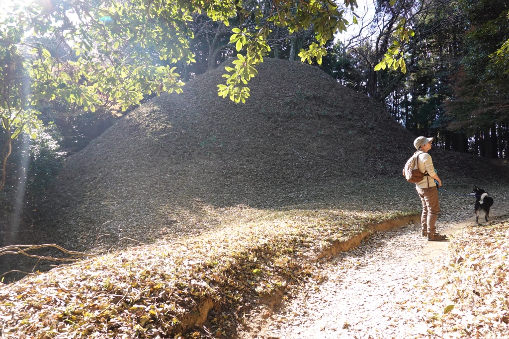このこんもりとした小山は切岸(きりきし)と呼ばれ、城に攻め込む敵を防ぐ目的なのだそうです。