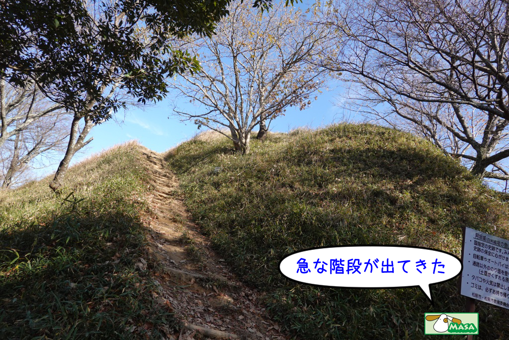 この上が阿坂城(白米城)の城跡であり、桝形山の山頂になるようです。