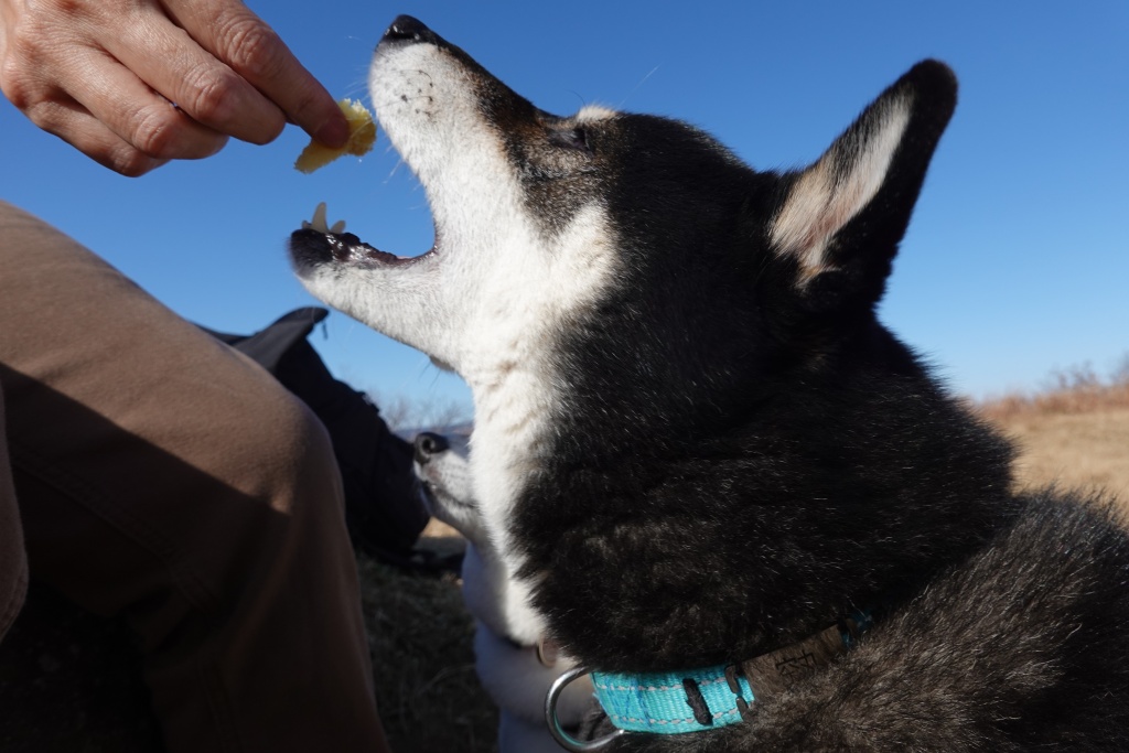 ワンコ達にもおすそ分けをしながら、抜群の景色の中、楽しいひと時を過ごします。