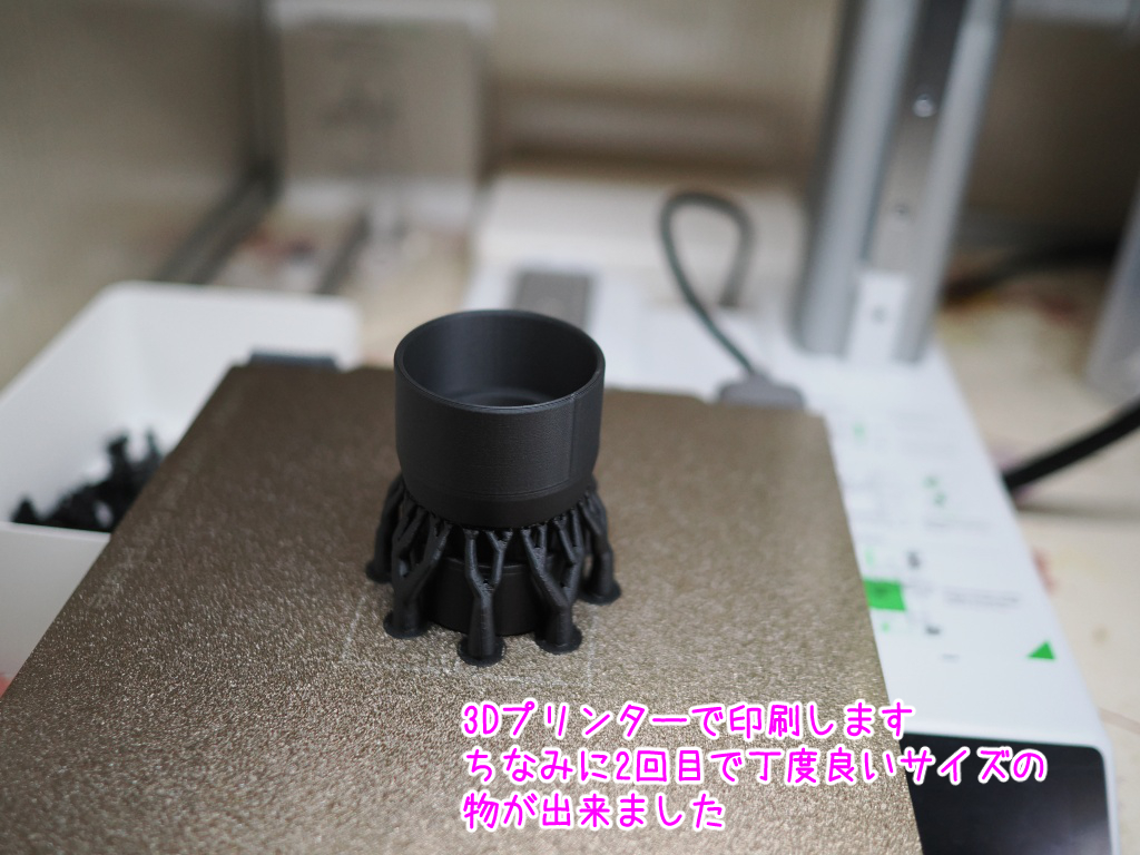 もちろん、そのままでは付かないので、アダプターを自分で設計して3Dプリンタで作りました。