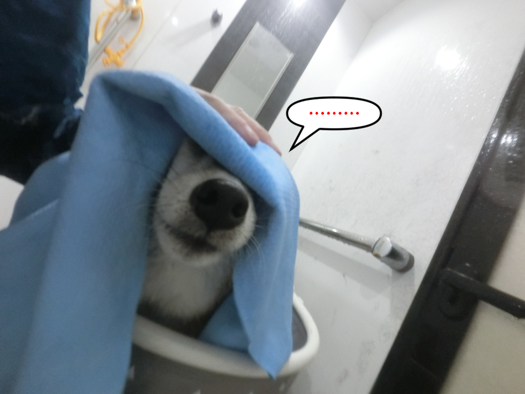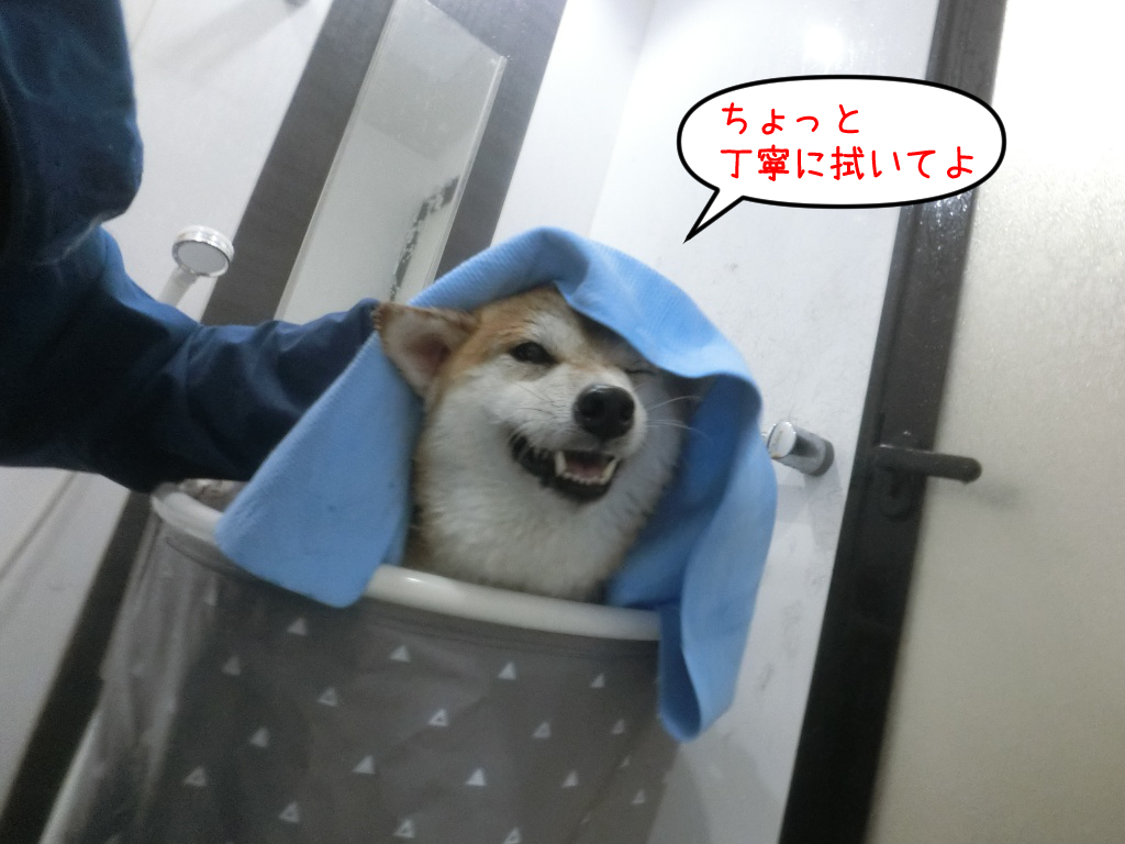 顔にも遠慮なくシャワーを掛けますが、さほど嫌がりません。